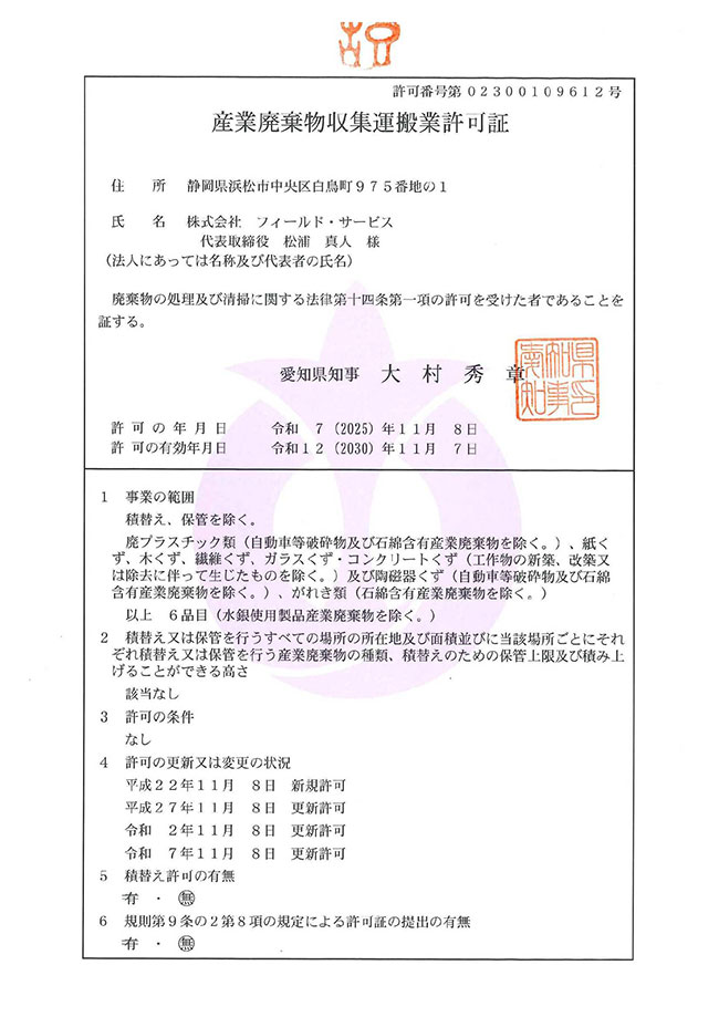 許 可: 特定建設業許可:静岡県知事(特2)第28147号